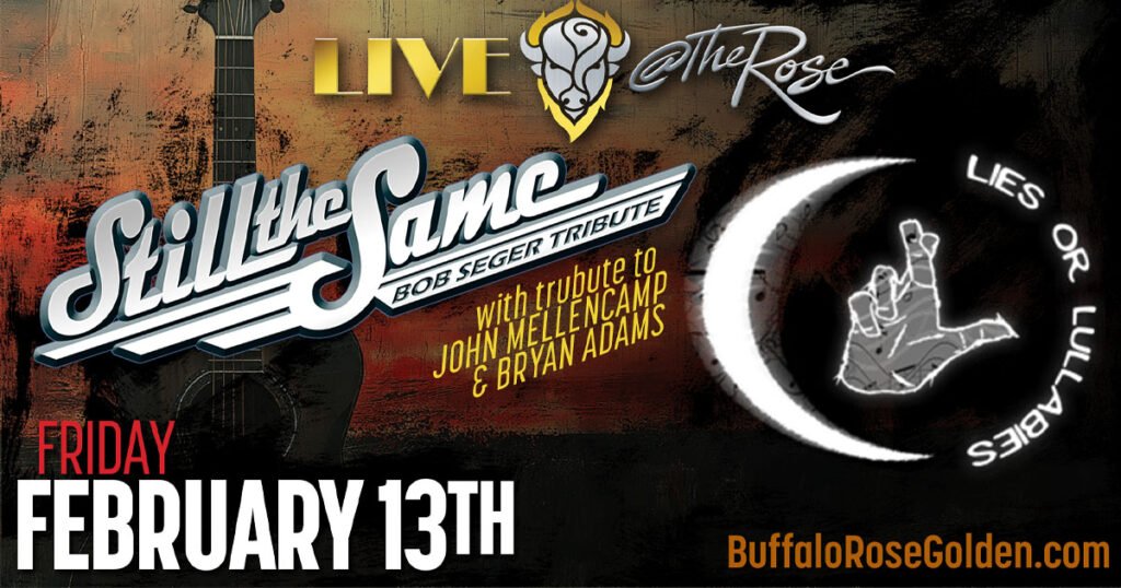 Buffalo Rose Presents Lies Or Lullabies with Still The Same Tributes to Mellencamp, Adams, Springsteen & Seger February 13, 2026 • 7:00 pm DOORS