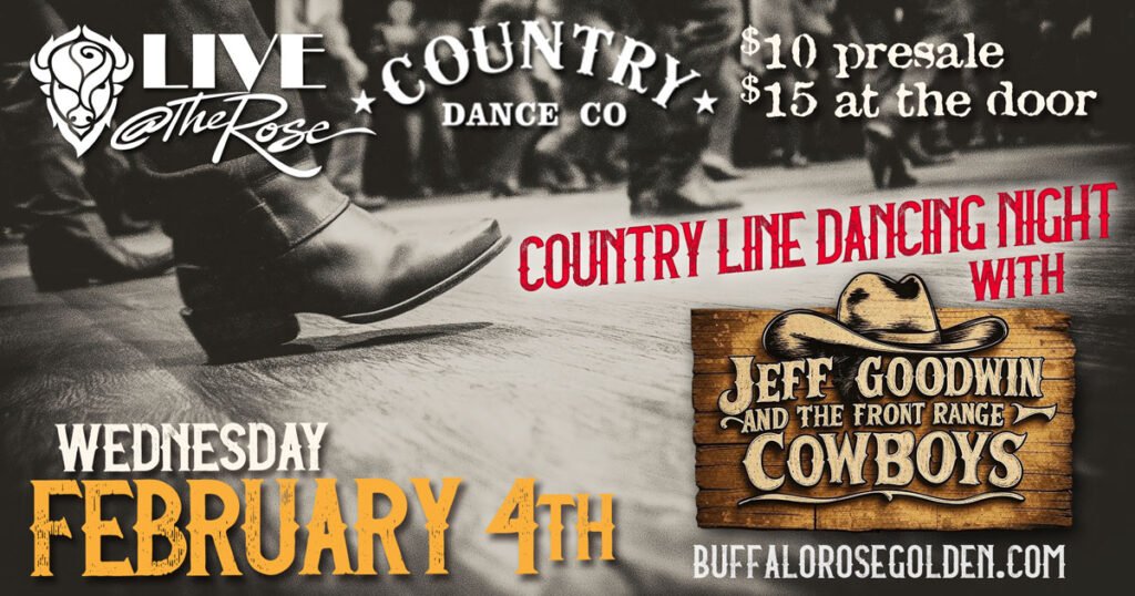 Kick Up Your Heels at the Buffalo Rose! Get ready to boot scoot and boogie at Golden’s hottest country night! Join Jeff Goodwin