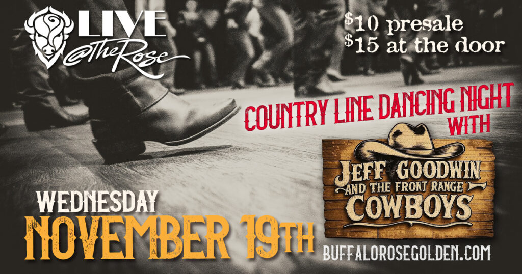 Kick Up Your Heels at the Buffalo Rose! Get ready to boot scoot and boogie at Golden’s hottest country night! Join Jeff Goodwin