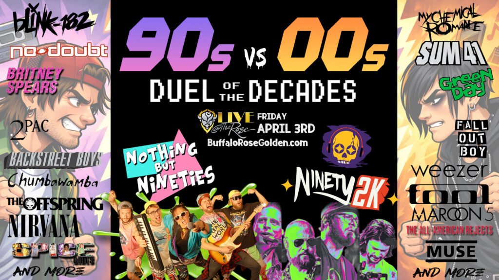 Two decades. One stage. Endless nostalgia. Get ready for the ultimate throwback throwdown as the 90s and 00s collide in an epic live music battle! Nothing But Nineties brings the sounds of dial-up internet, flannel, and pop domination with hits from Backstreet Boys, Spice Girls, Nirvana, 2Pac and more. Then Ninety2K fires back with the era of MP3s, MySpace, and pop-punk anthems, performing My Chemical Romance, Fall Out Boy, Sum 41 and beyond. Grunge or emo? Boy bands or pop-punk? Dress your decade, sing it loud, and help decide the winner in this nostalgia-fueled showdown you won’t forget.