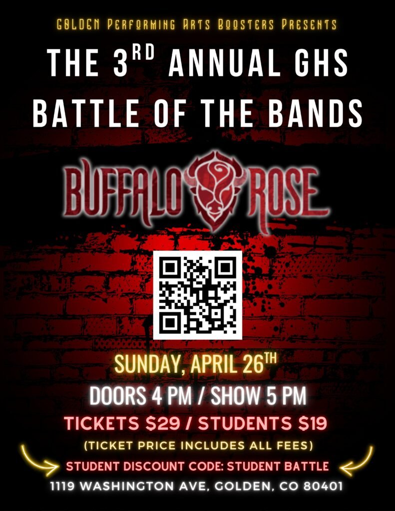 Golden Performing Arts Boosters presents The 3rd Annual GHS Battle Of The Bands The Golden Performing Arts Boosters proudly presents the 3rd Annual GHS Battle
