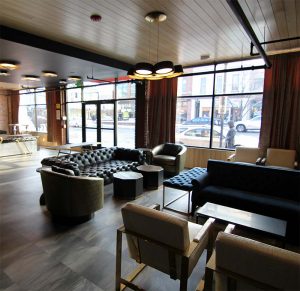 Visitors enter the building under the classic grand marquee and enter a space with soaring ceilings, bold steel trusses, elegant lighting and original brick walls define the new venue and Lobby space. In addition, The Lobby has a fully stocked bar, classic parlor games, and two big-screen televisions. This space is quite unique as it allows for a lounge, a bar, and dining space for tables to be set up and is ideal for moderate social dining functions (60 ppl).